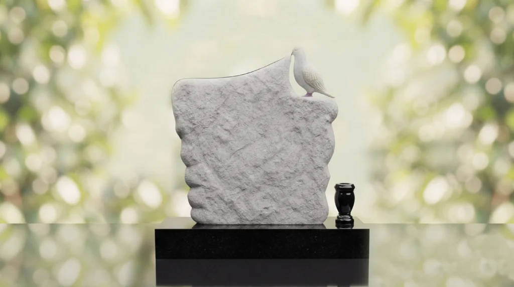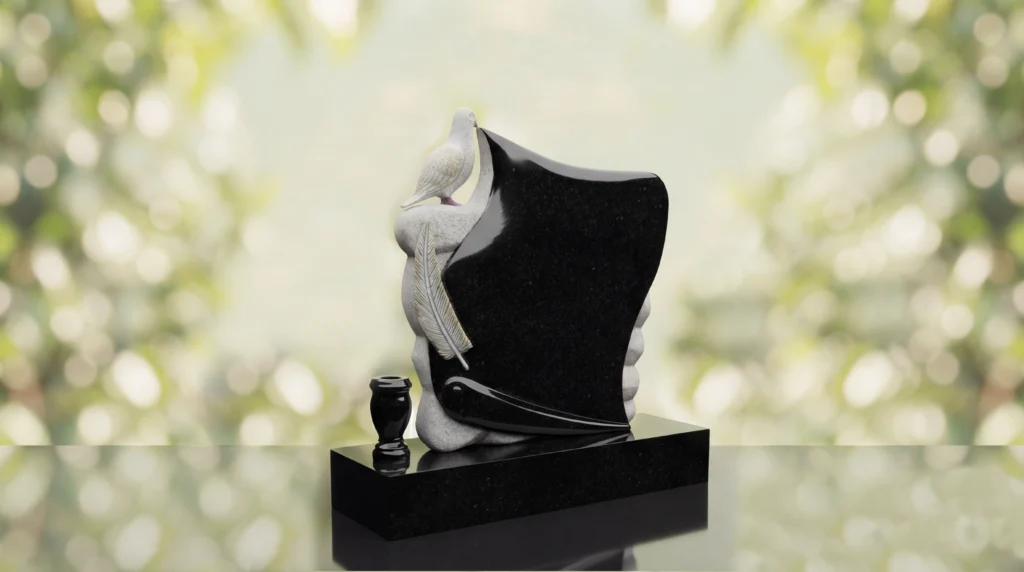 The Dove Feather Upright Headstone is a graceful memorial style featuring a sculpted dove and feather design that brings a sense of peace and remembrance to the tribute. Created as a comfort memorial, this monument serves as a meaningful headstone and grave marker for families seeking an elegant design with symbolic beauty and lasting presence.