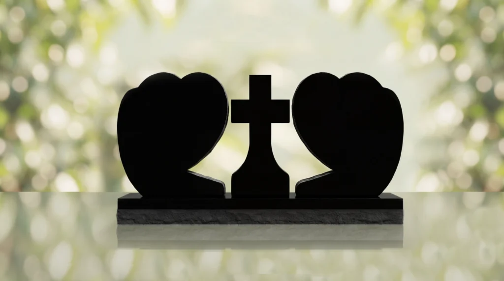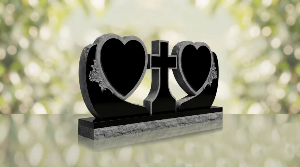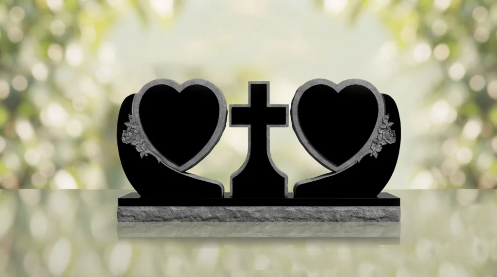 The Heart Companion Headstone with Cross is a companion memorial style designed to honor two loved ones in a unified and meaningful tribute. Featuring twin heart-shaped tablets with Christian symbolism at the center, this monument creates a distinctive memorial and grave marker that reflects love, faith, and lasting remembrance.