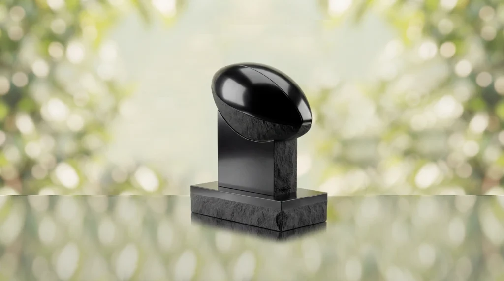 The Rugby Ball Headstone is a sport style memorial designed for families who want to honor a loved one with a strong and personal tribute. Featuring a sculpted rugby ball form on a clean upright base, this monument serves as a meaningful memorial, headstone, and grave marker that reflects dedication, pride, and lasting remembrance.