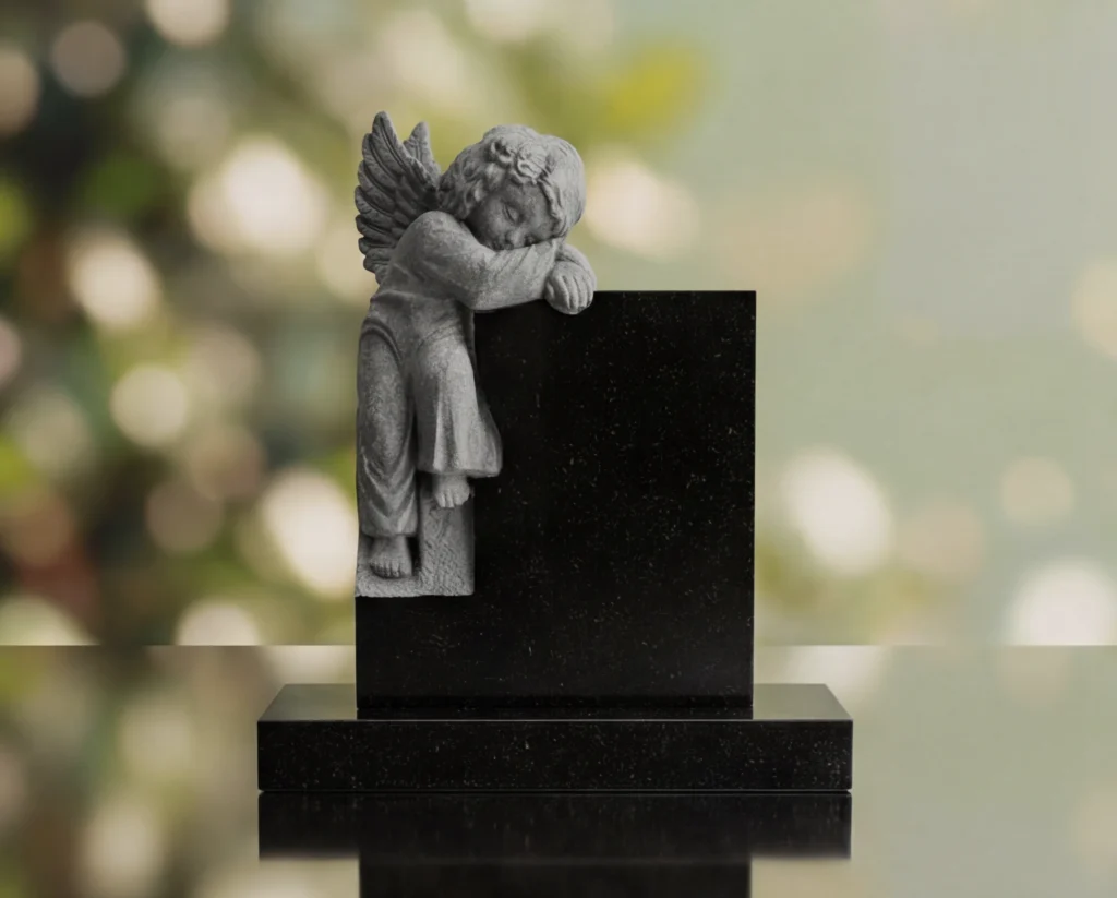 The Sleeping Angel Headstone is a heartfelt memorial style featuring a sculpted angel resting gently against the tablet, creating a tribute filled with peace and tenderness. This monument serves as a meaningful memorial and grave marker for families seeking a design that expresses comfort, love, and lasting remembrance.