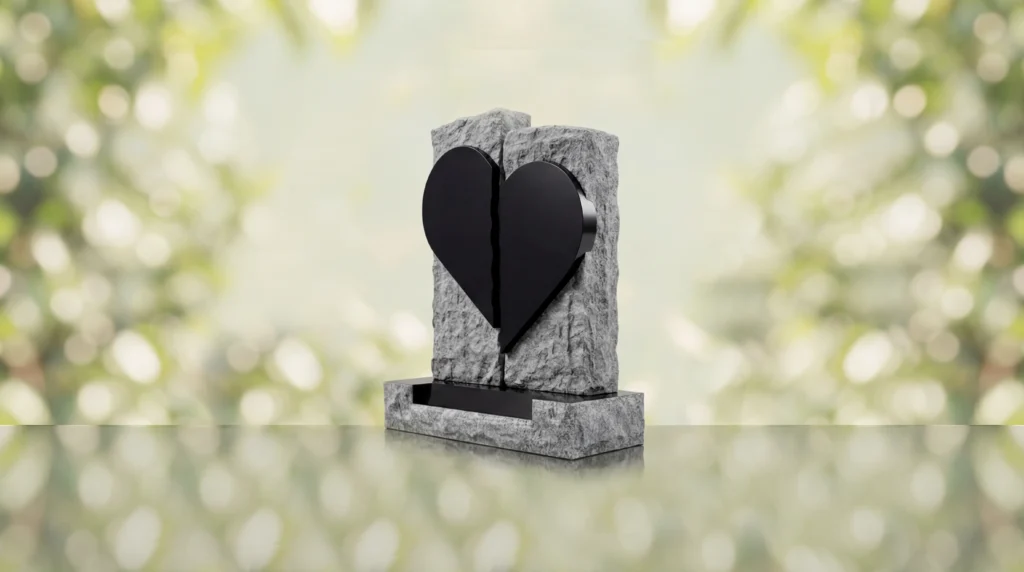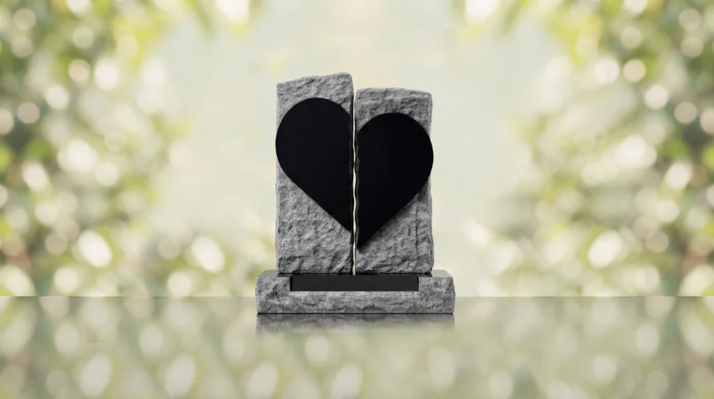 The Broken Heart Companion Headstone is a distinctive companion memorial style designed to honor two loved ones with a powerful symbol of connection and remembrance. Created as a comfort memorial, this monument serves as a meaningful headstone and grave marker, with a split heart design that reflects enduring love and an unbreakable bond.